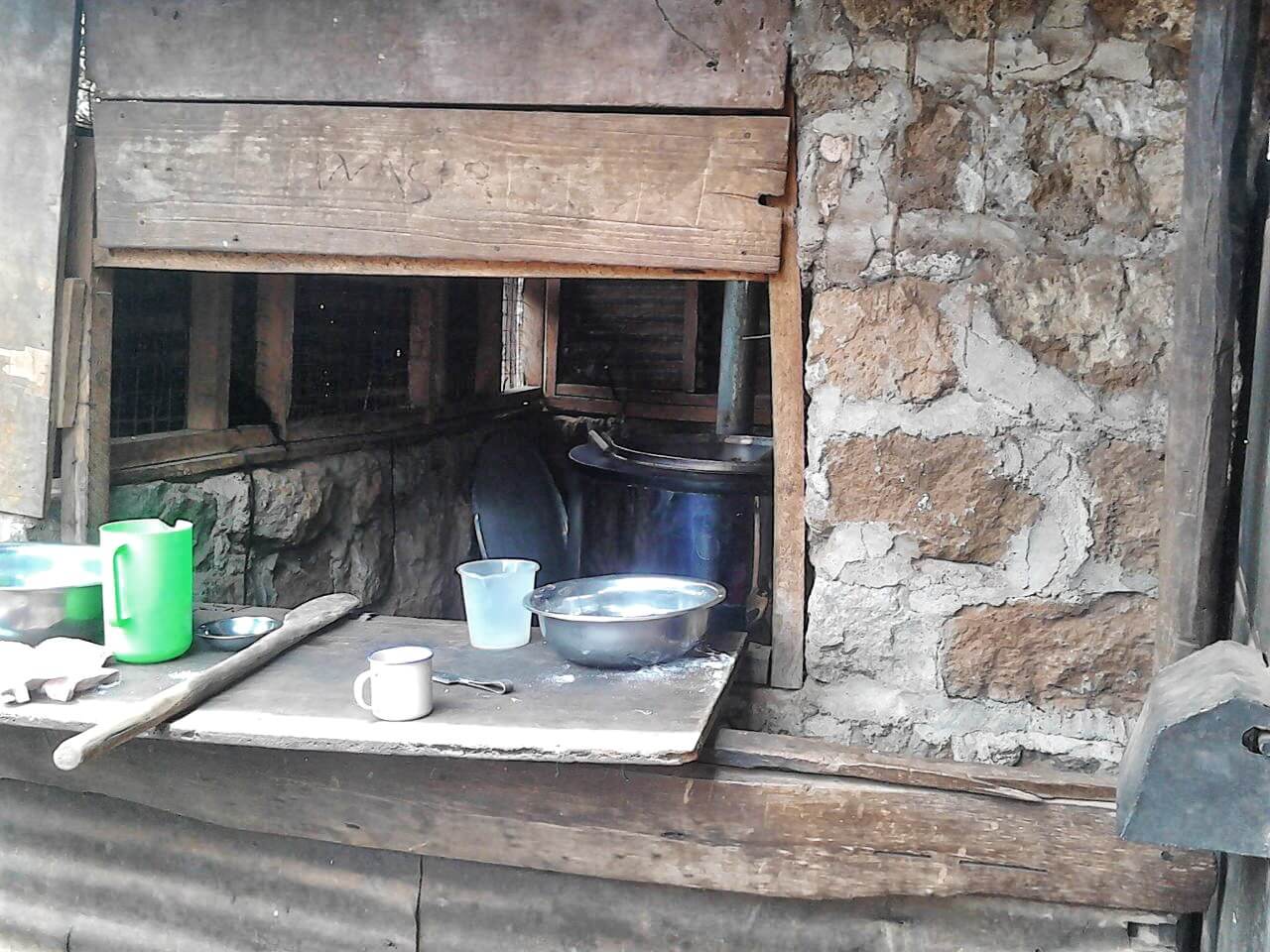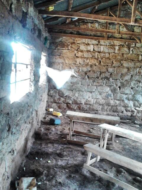 - Betonboden, Fenster, Schulbänke, Wandtafeln, Küchen- und sanitäre Sanierung.